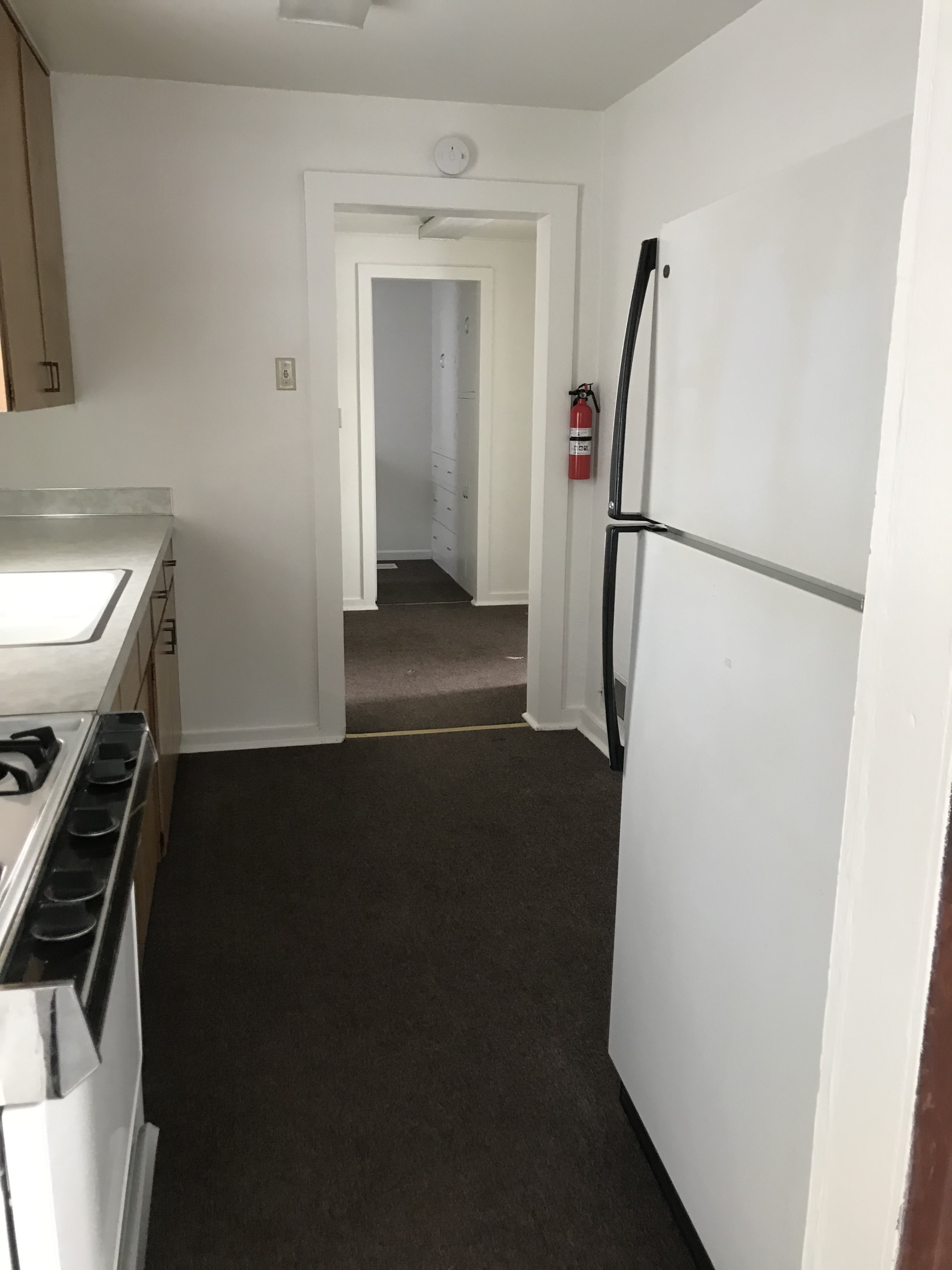 The home offers over 500 square feet of living space, complete with a private yard, an attached one-car garage, and an open basement perfect for storage. The kitchen comes equipped with a refrigerator and range, and washer/dryer hookups are provided for your convenience.