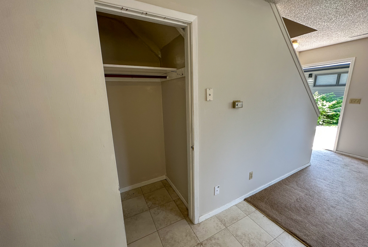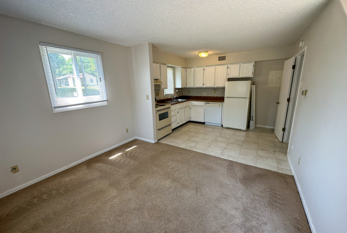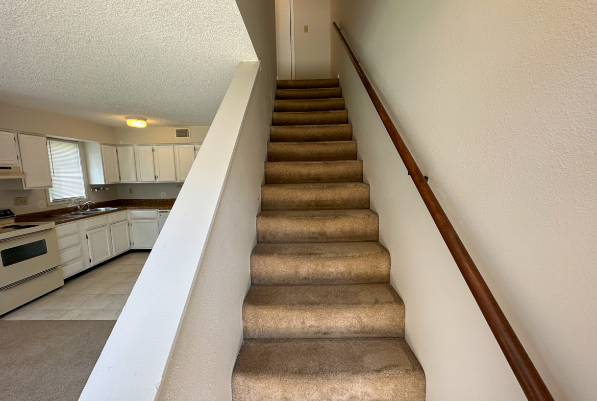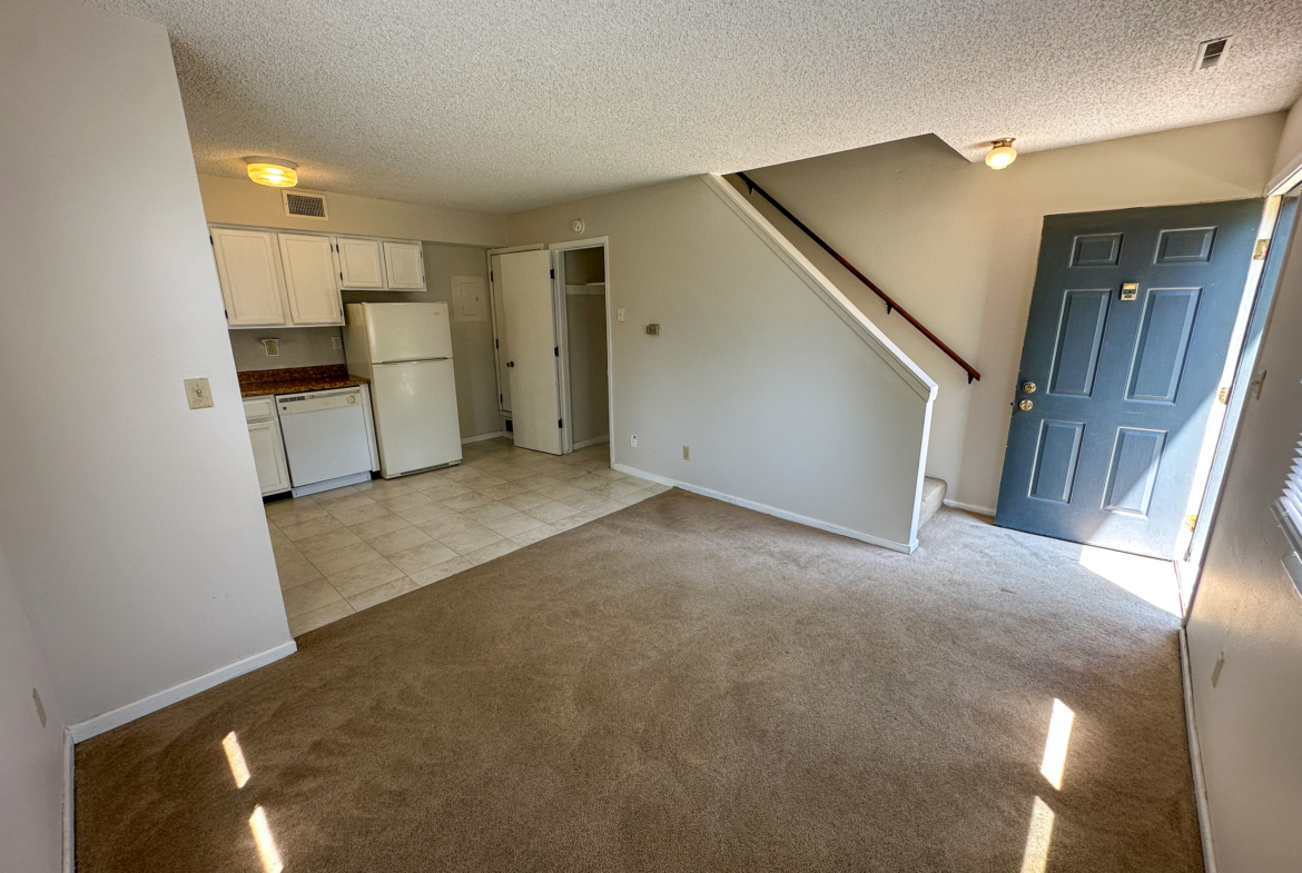 This unit offers 620 sq. ft. of thoughtfully designed living space. The main floor features a cozy carpeted living room and a kitchen equipped with classic vinyl flooring, a range, dishwasher, refrigerator, and garbage disposal. Upstairs, you’ll find the spacious bedroom and bathroom, both designed for comfort and convenience.