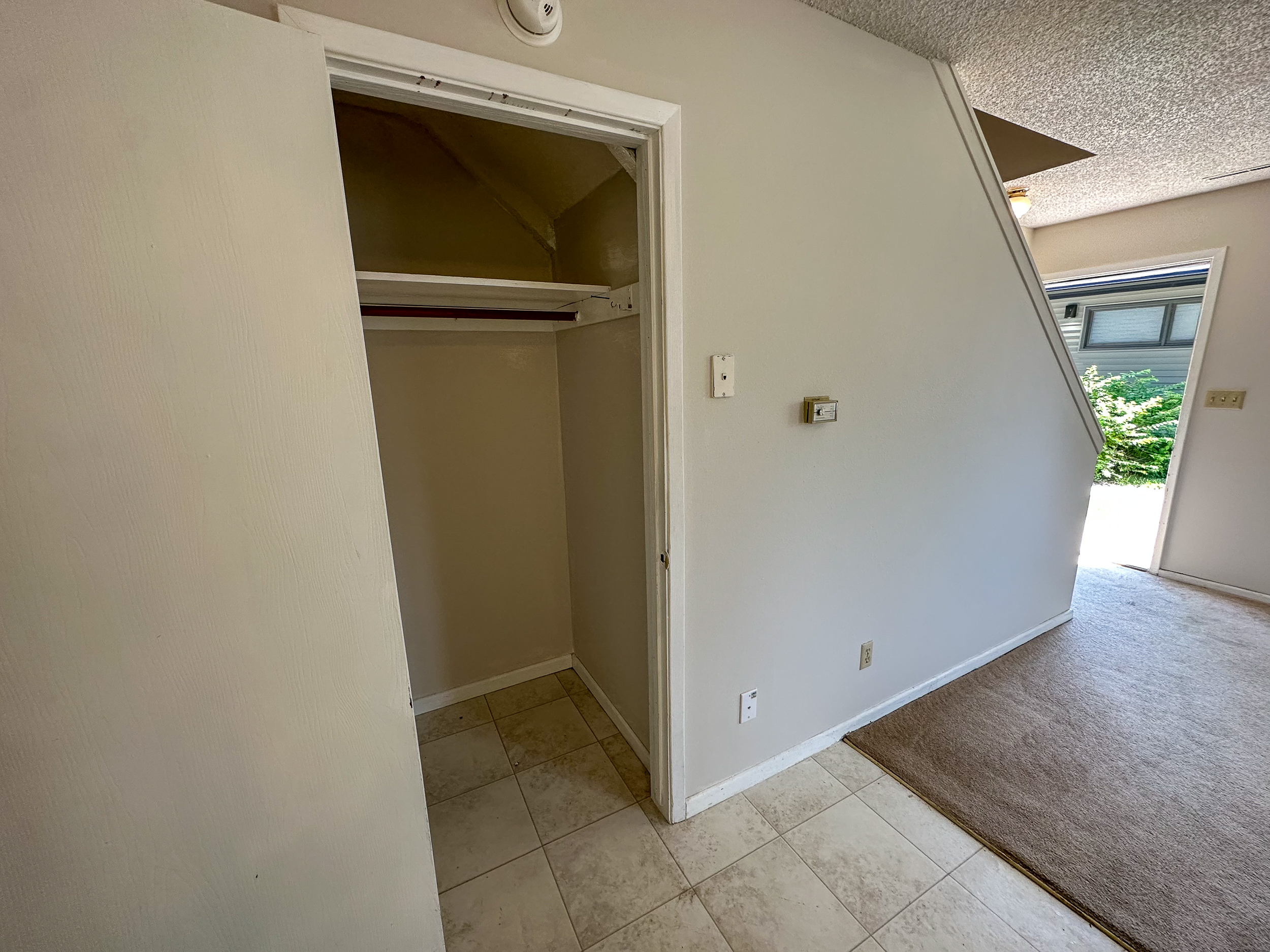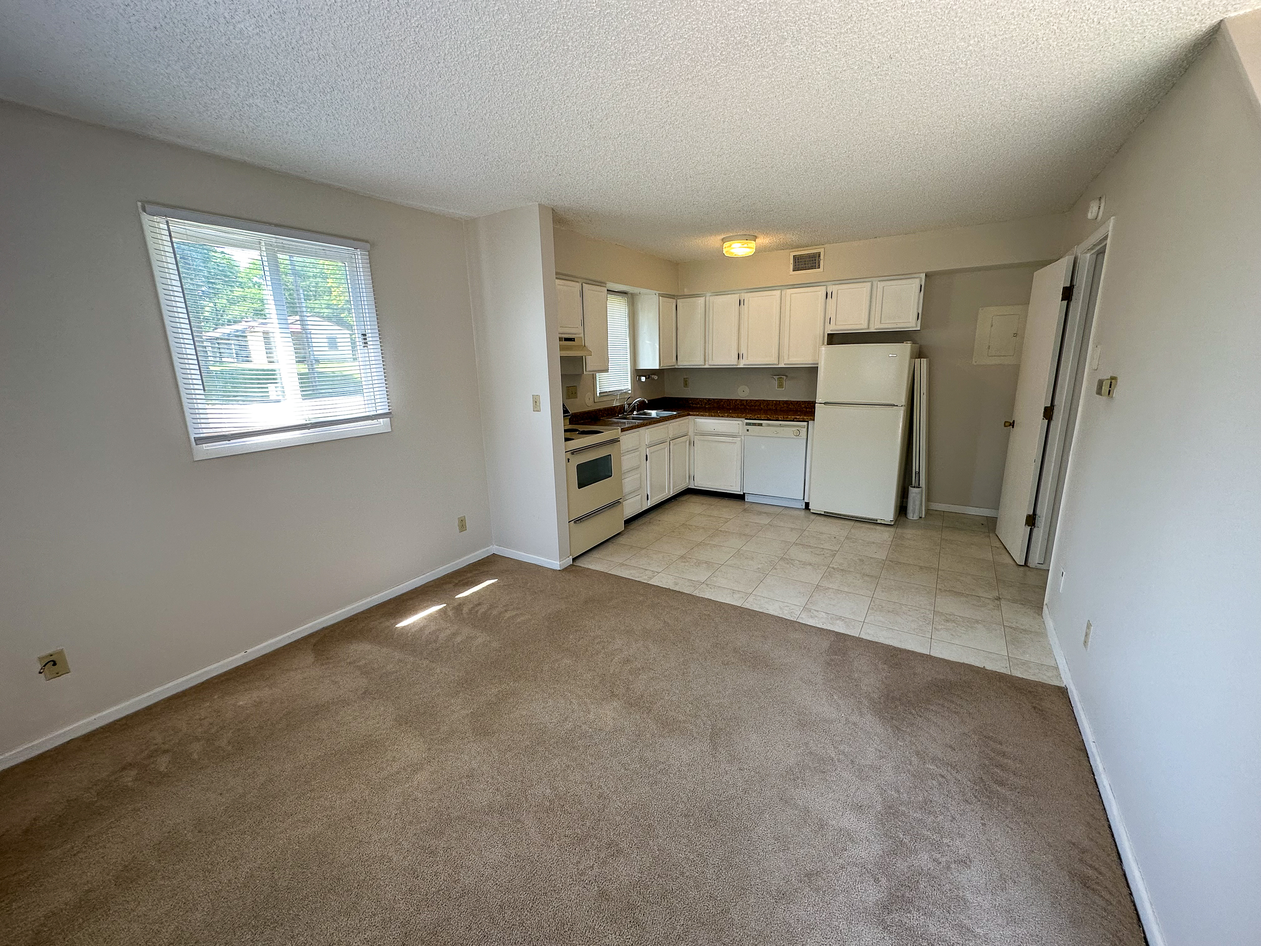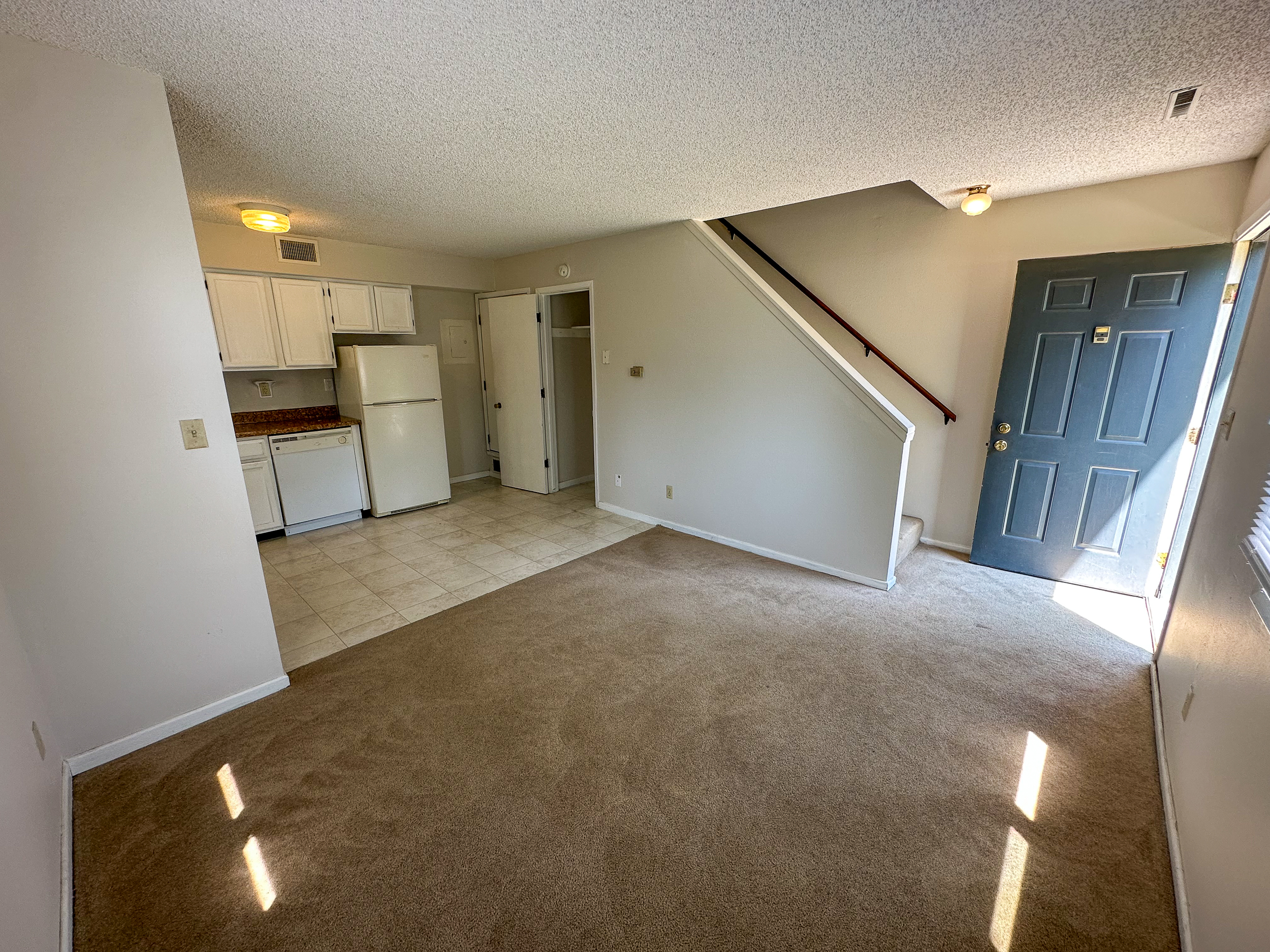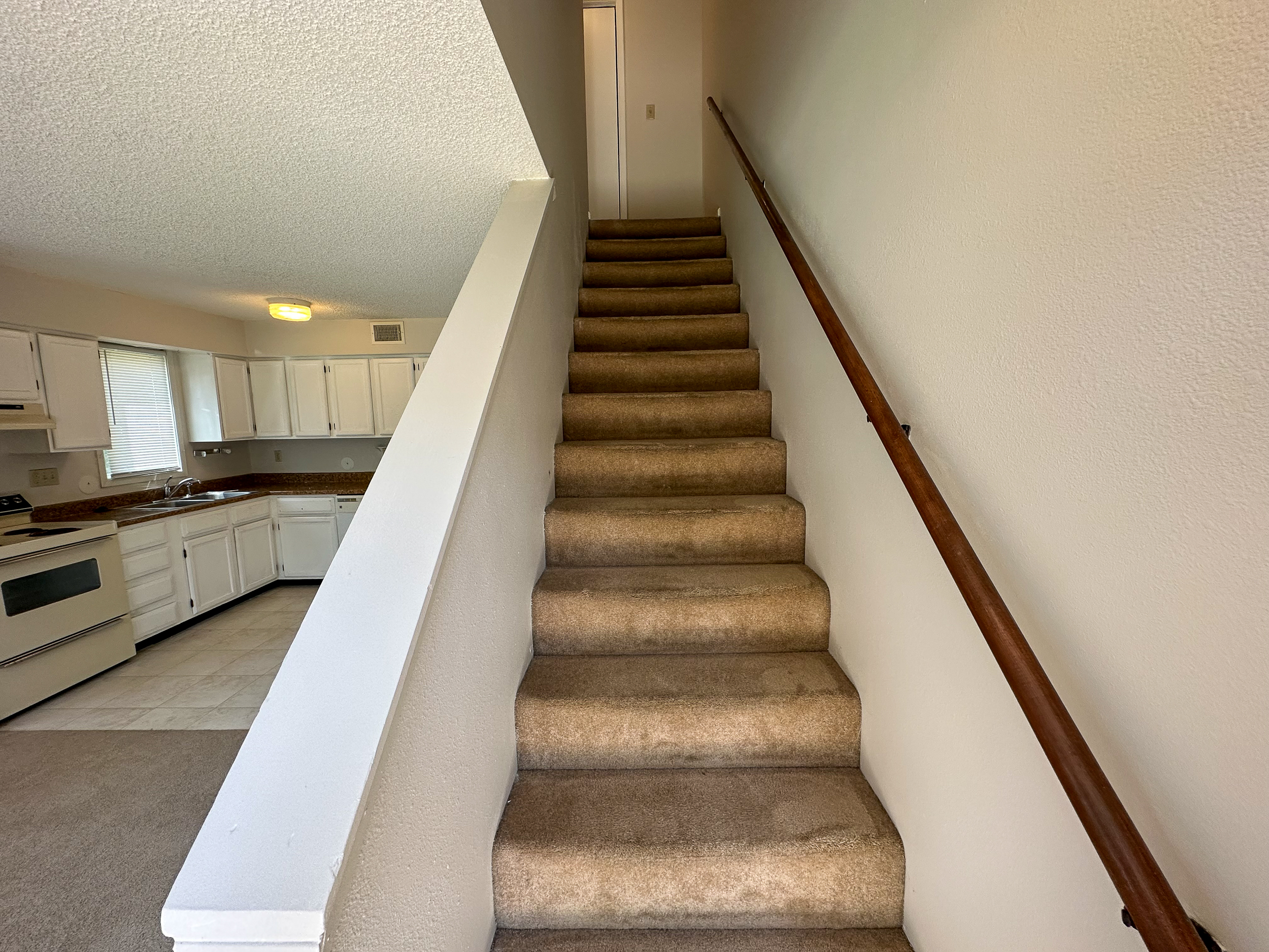 This unit offers 620 sq. ft. of thoughtfully designed living space. The main floor features a cozy carpeted living room and a kitchen equipped with classic vinyl flooring, a range, dishwasher, refrigerator, and garbage disposal. Upstairs, you’ll find the spacious bedroom and bathroom, both designed for comfort and convenience.